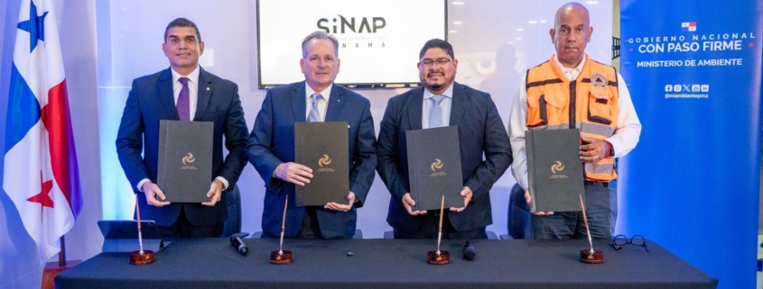 Panamá, 24 de noviembre de 2025.- El Ministerio de Ambiente (MiAmbiente), la Autoridad de Turismo de Panamá (ATP), el Sistema Nacional de Protección Civil (SINAPROC) y el Sistema Estatal de Radio y Televisión (SERTV) formalizaron una alianza estratégica de gran valor para el país, mediante la firma de un Memorando de Entendimiento que impulsa la innovación, la coordinación interinstitucional y el desarrollo sostenible.