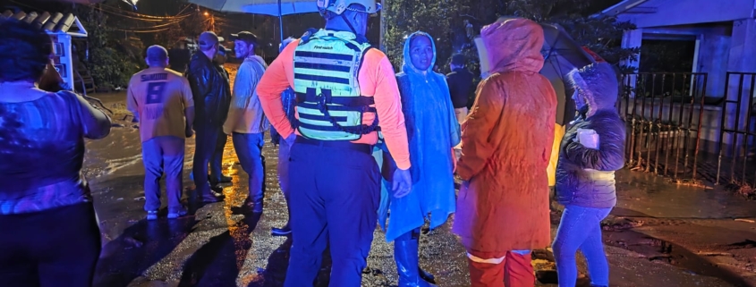 Equipos de SINAPROC, en coordinación con el Gabinete de Gestión de Riesgo y Desastres (GIRD), Bomberos, Cruz Roja, Juntas Comunales, Gobiernos Locales, Policía Nacional y otros estamentos de apoyo, mantienen labores de evaluación de daños, limpieza de vías y atención humanitaria a las familias afectadas.
