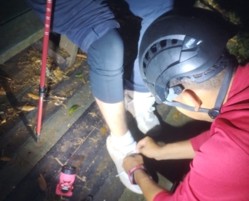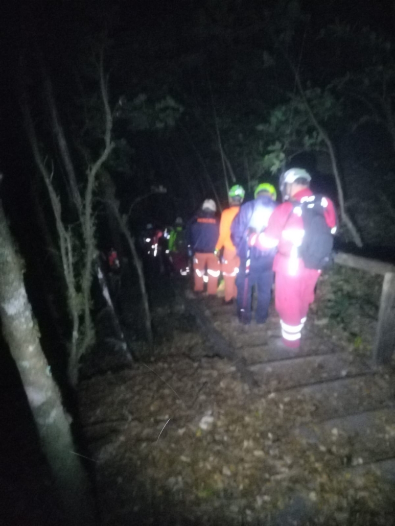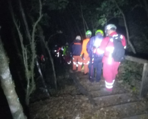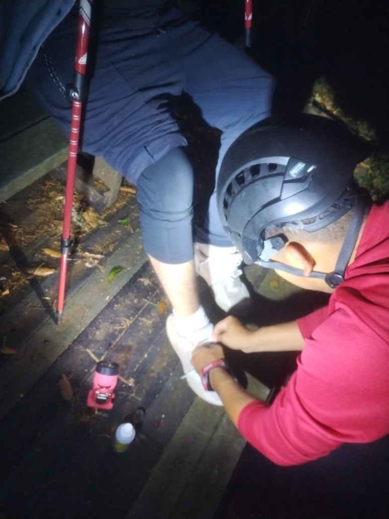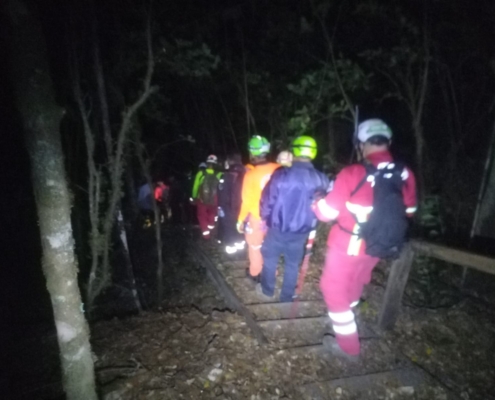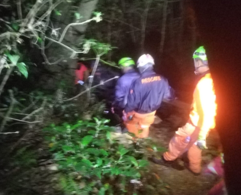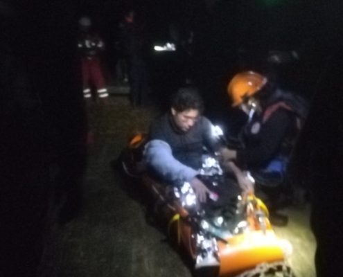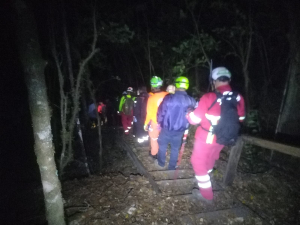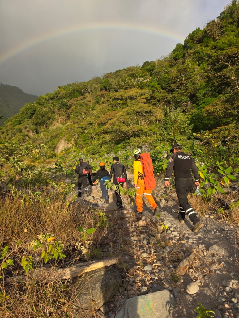A las 6:00 de la tarde, un primer equipo multidisciplinario inició el ascenso para la intercepción del paciente, logrando contacto a las 7:30 horas en el punto conocido como “La 45”. En el sitio se realizó la evaluación primaria, estabilización y empaquetamiento en camilla especializada, dando inicio a un descenso técnico, que requirió el uso de sistemas de cuerdas y maniobras especializadas, debido a la complejidad del terreno.